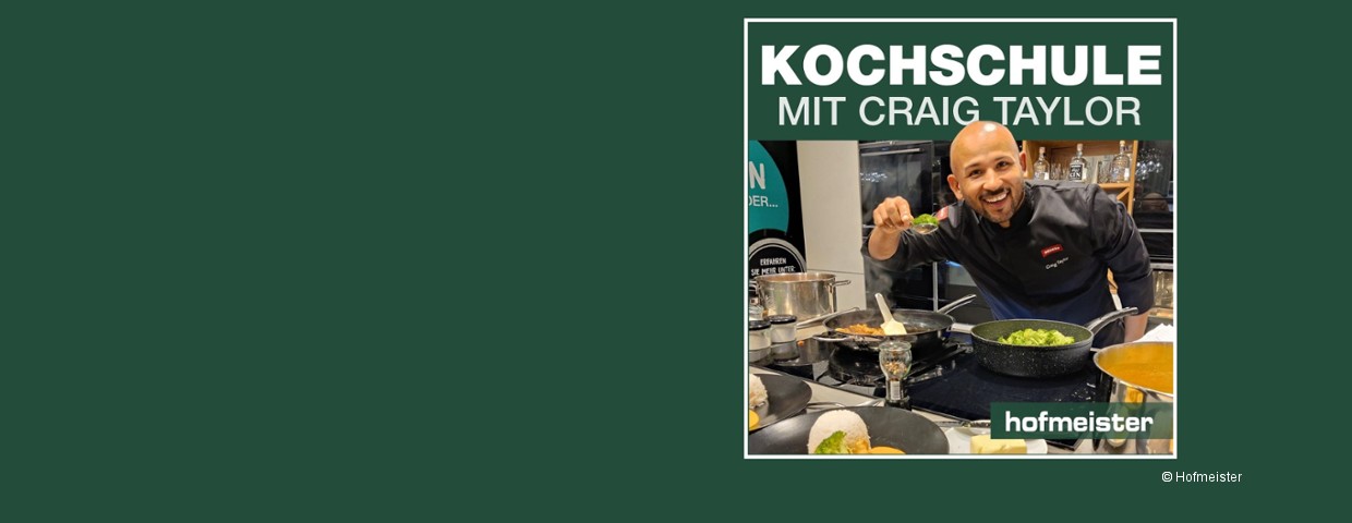Craig Taylor, bekannt aus der Sat.1. Show The Taste und inspiriert von internationaler Küche, lädt Sie ein, in der Hofmeister Kochschule nicht nur zuzusehen, sondern aktiv mitzukochen. Hier treffen kulinarische Kreativität und Leidenschaft aufeinander, und Sie lernen direkt von einem Experten!