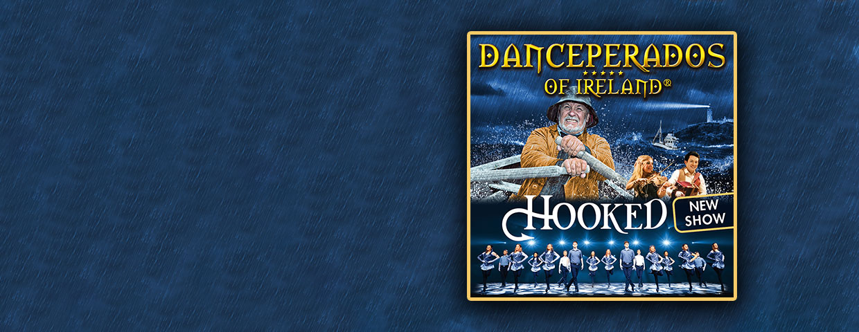 Die Danceperados of Ireland haben diese faszinierende Symbiose erkannt und einen ganz dicken Fisch an der Angel. Ihre neue Show heißt „Hooked“. Sie bringt die Faszination des Fischens, Tanzens, Musik und Gesang auf einen Nenner. „Hooked“ ist ein Tribut an die maritimen Communities und deren Sitten und Bräuche, die so wunderbar anders sind als die der Großstädte. Die Lieder und Geschichten drehen sich um und über das Meer. Sie bringen uns zurück in eine Zeit, als Menschen noch als Selbstversorger ein einfaches und selbstbestimmtes Leben führten. Aber auch ein gefährliches! Das Meer hat gegeben, hat aber oft auch genommen. Wenn ein Fischer mit seinem Kutter ausläuft, dann ist immer Leben und Tod mit an Bord. Eine Multivision mit historischen und auch aktuellen Bildern und Videos verbindet sich mit Musik und Stepptanz zu einem Gesamtkunstwerk.