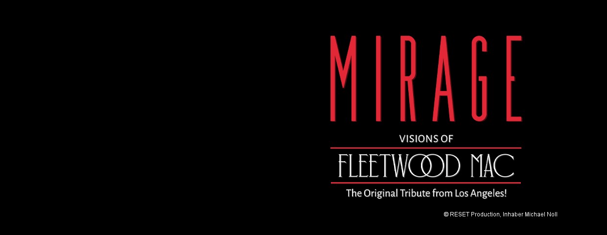 „Mirage“, benannt nach dem drittmeistverkauften Album von Fleetwood Mac (2.8 Millionen verkaufte Alben), ist der Name der international preisgekrönten Tribute-Band aus Los Angeles, USA. Die fünf Musiker performen nicht nur die Musik, sondern transportieren auch die Magie der Original-Besetzung. Die Band besteht aus Michelle Tyler als Stevie Nicks, Bob Weitz als John McVie, Annie Boxell als Christine McVie, Gary Hagen als Lindsey Buckingham und Richard Graham als Mick Fleetwood. Die Show feiert die legendäre „Rumours“-Ära von Fleetwood Mac und wurde sogar von Stevie Nicks persönlich hochgelobt.